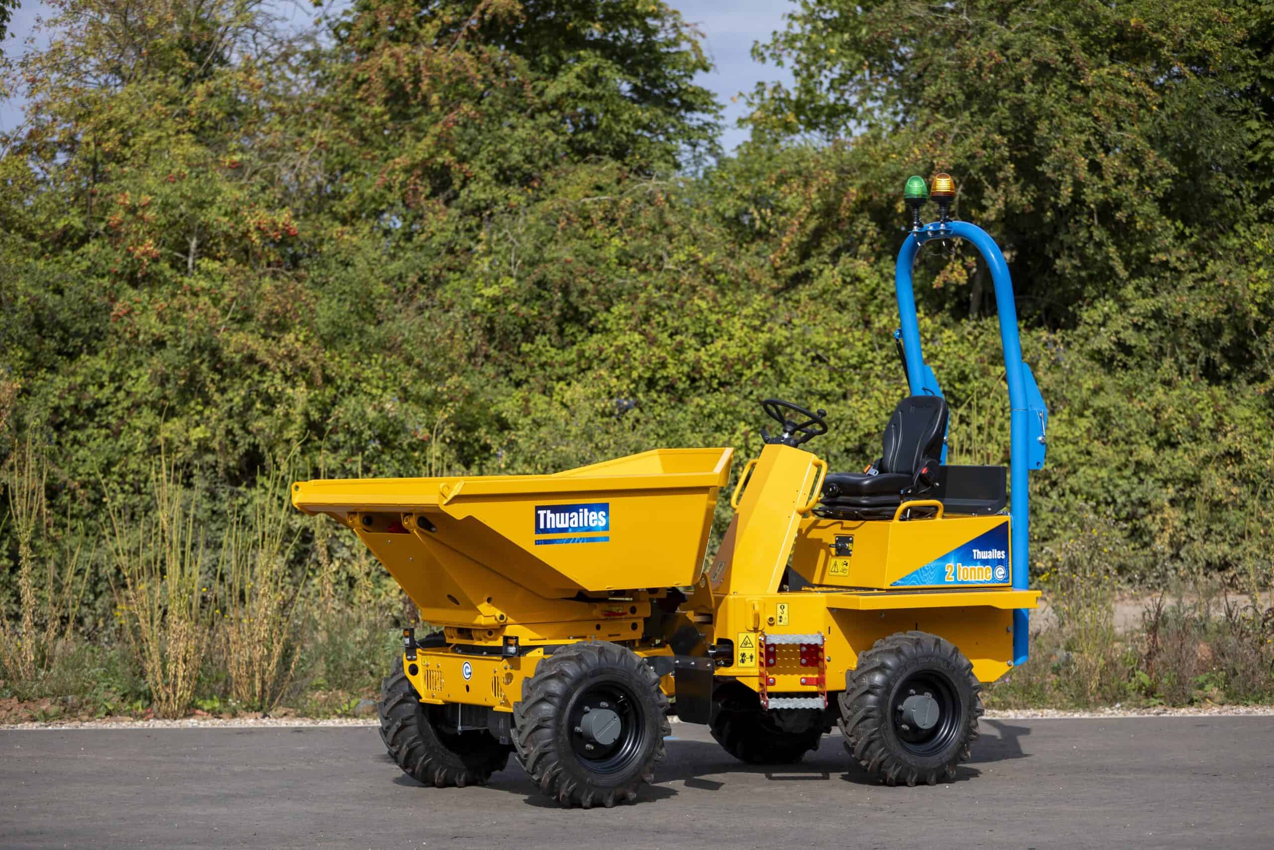 The Thwaites 2 Tonne High Swivel, all electric dumper is manufactured with contractors and hirers in mind – ensuring operator safety, reducing risk on site and producing zero emissions. Four maintenance free, longlife, lithium-ion (dry-cell) batteries, operating at 48V, are fitted. The battery pack is rated at 22kWh, providing the power to drive the machine. Two highly efficient electric motors (one for traction, one for the hydraulic services) give the operator the control and manoeuvrability expected from a Thwaites dumper.